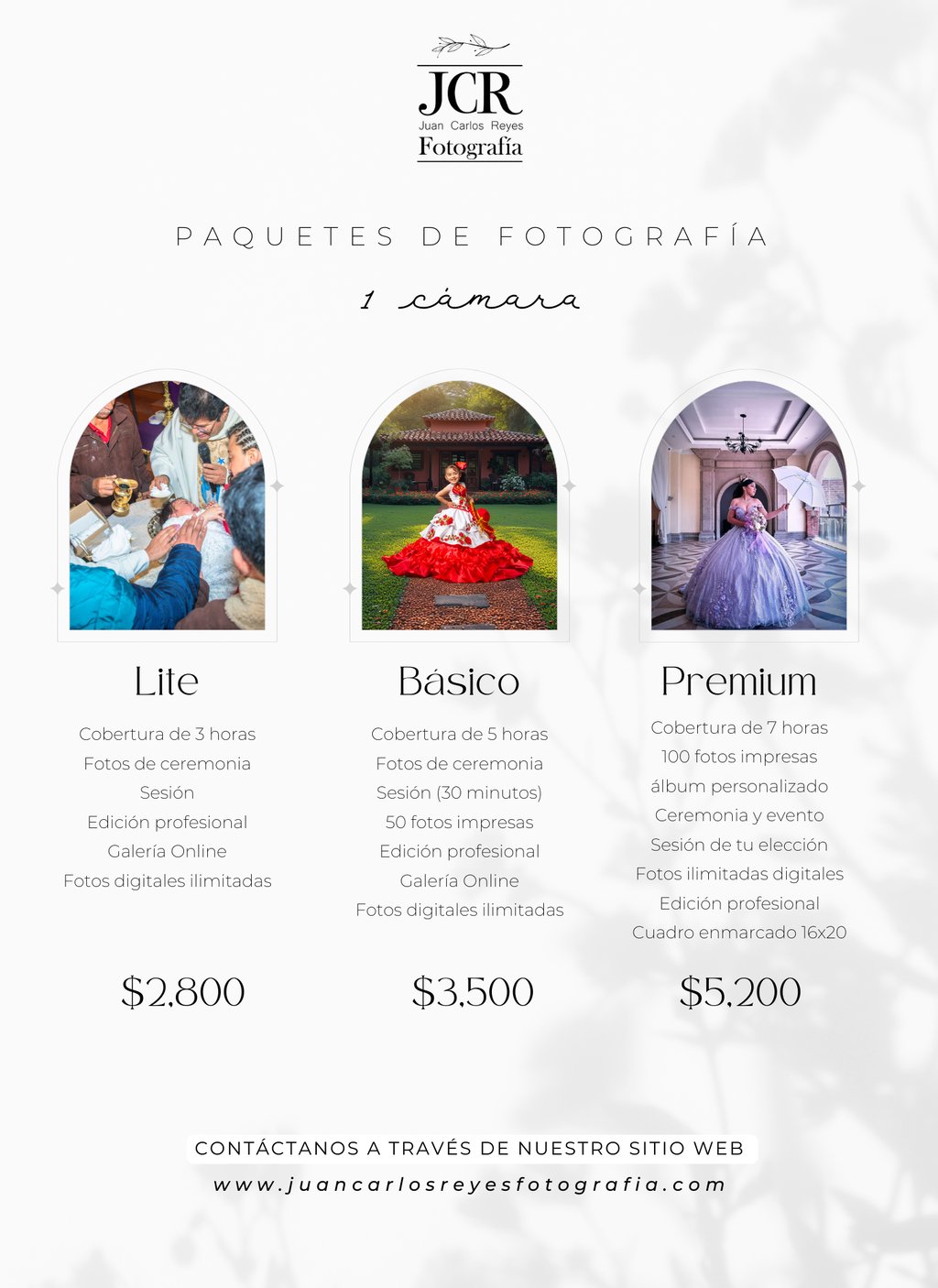 Somos especialistas en fotografía de Bodas y Quinceañeras, pero gracias a nuestro tiempo de experiencia en múltiples eventos cubrimos bautizos, presentaciones e incluso eventos sociales especiales.